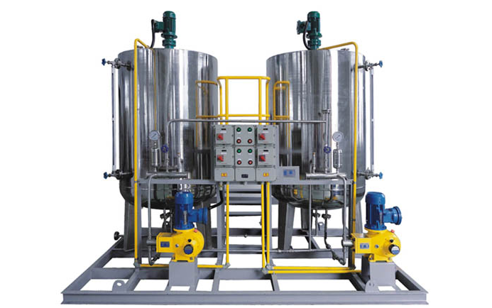 本裝置主要包括藥液計量泵系統、溶配系統、計量投加系統、安全系統和控制系統等五部分。