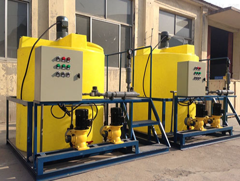 加藥裝置根據(jù)所需藥劑濃度,在攪拌箱內(nèi)配置,經(jīng)攪拌器攪拌均勻后投入溶液箱、用計量泵向投藥點或指定系統(tǒng)中輸送所配制的溶液。成套加藥裝置具有結(jié)構(gòu)緊湊、安全簡單、操作使用簡便等特點。加藥裝置還可根據(jù)用戶不同工藝流程的要求,進行有針對性的設(shè)計、配置必要的部件,實現(xiàn)自動遠程控制等功能。